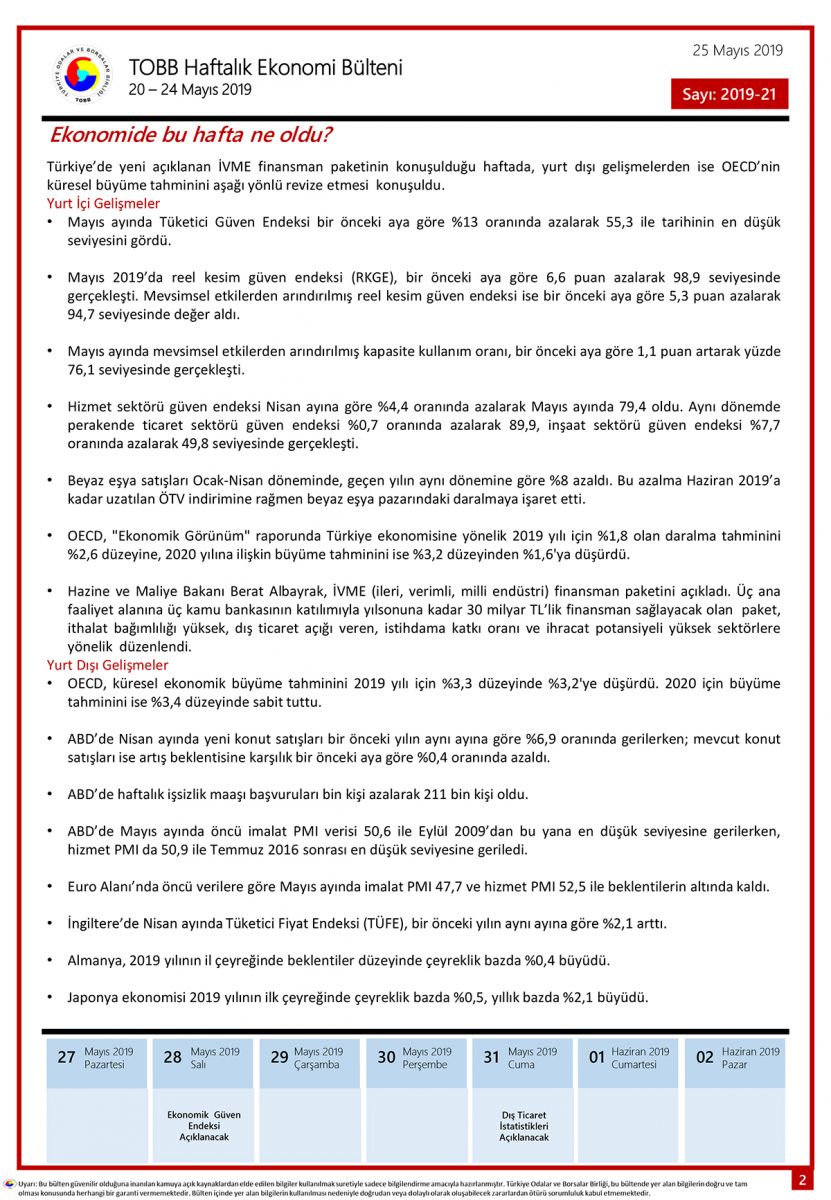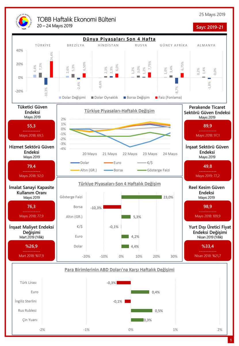 TOBB HAFTALIK EKONOMİ BÜLTENİ 20 – 24 MAYIS 2019