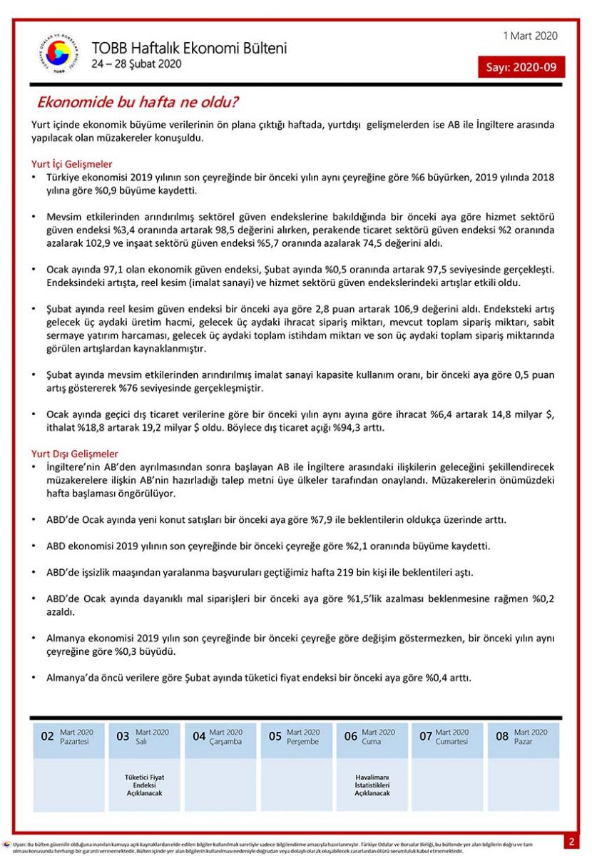 TOBB HAFTALIK EKONOMİ BÜLTENİ 2020-09