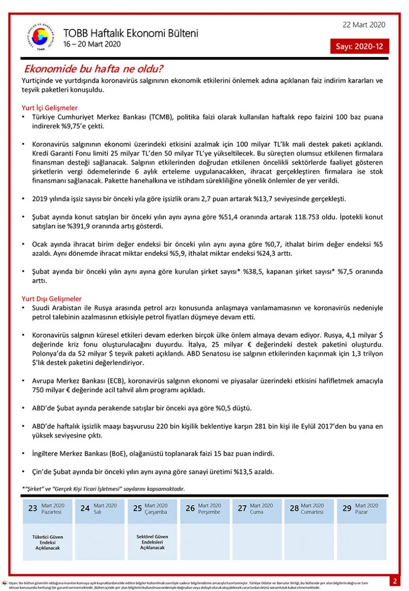 TOBB HAFTALIK EKONOMİ BÜLTENİ 2020-12