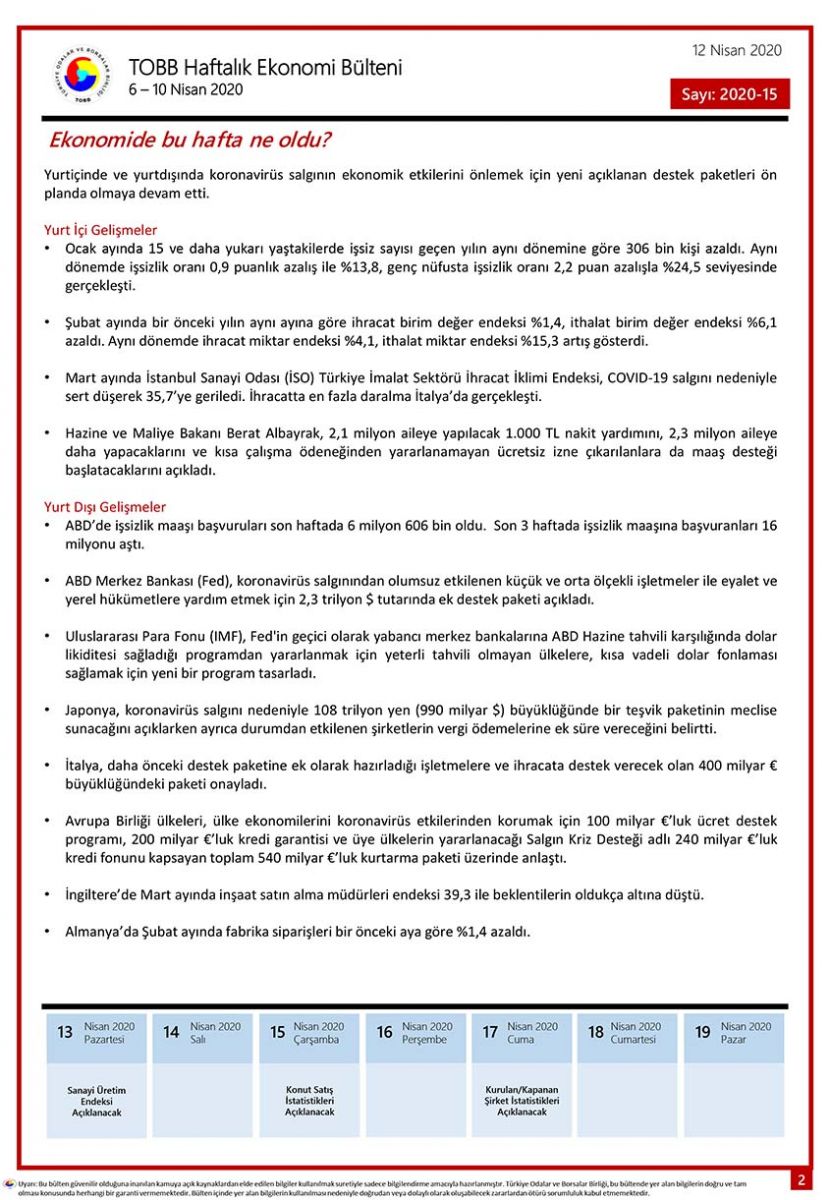 TOBB HAFTALIK EKONOMİ BÜLTENİ 2020-15