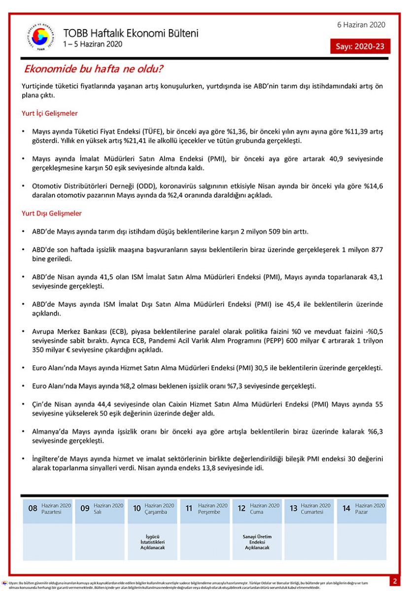 TOBB Haftalık Ekonomi Bülteni 2020-23