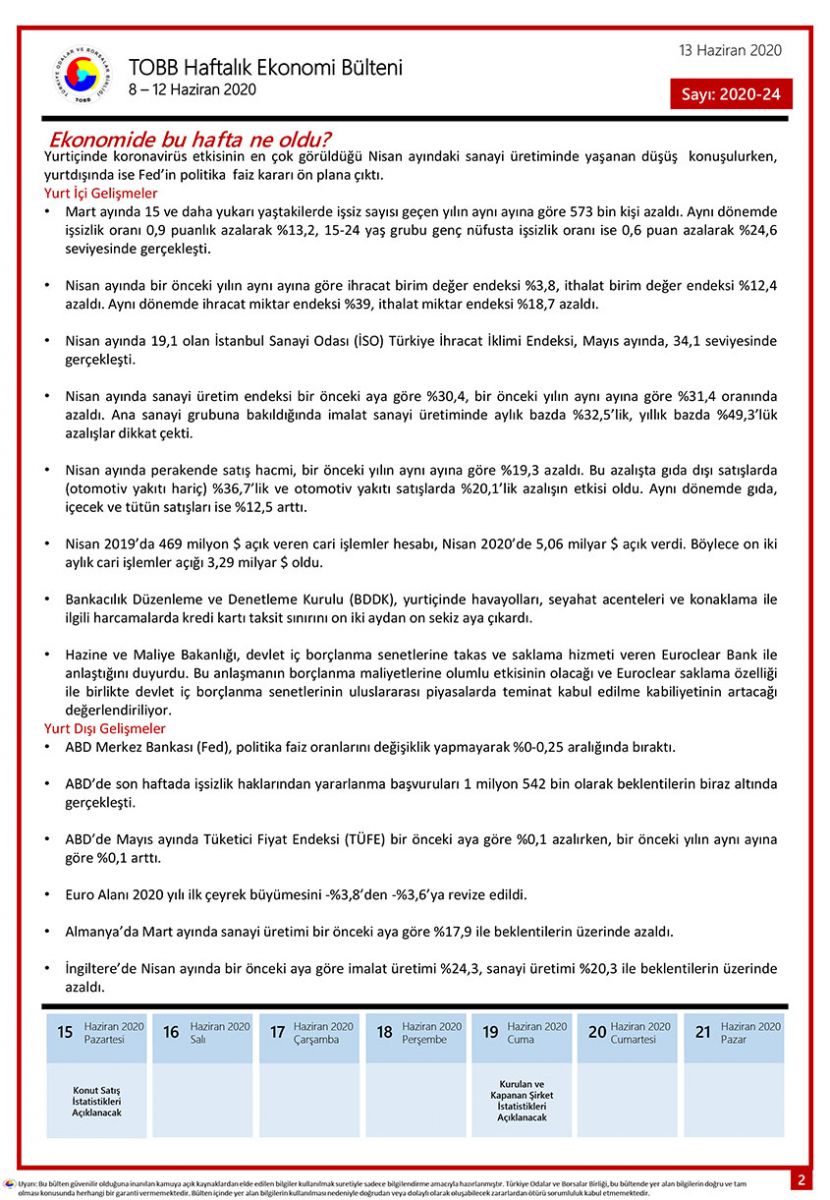 TOBB HAFTALIK EKONOMİ BÜLTENİ 2020-24