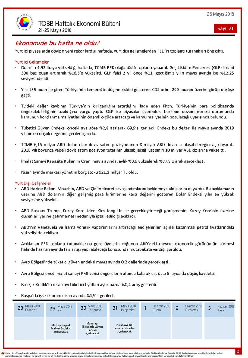 TOBB HAFTALIK EKONOMİ BÜLTENİ 21