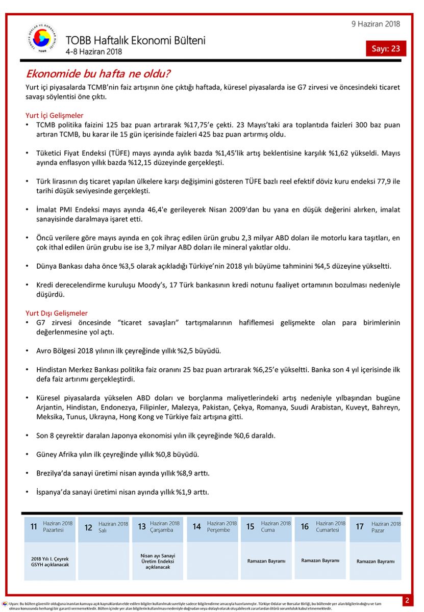 TOBB HAFTALIK EKONOMİ BÜLTENİ 23