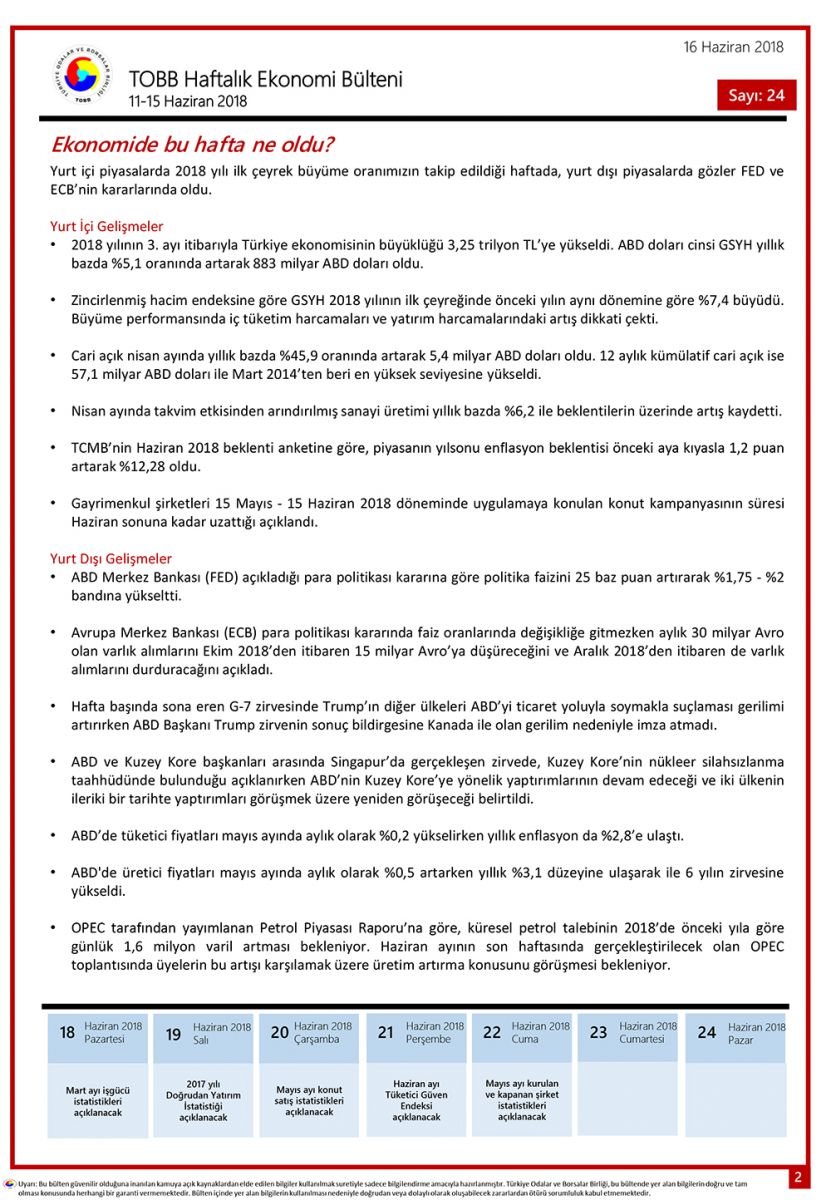 TOBB HAFTALIK EKONOMİ BÜLTENİ 24