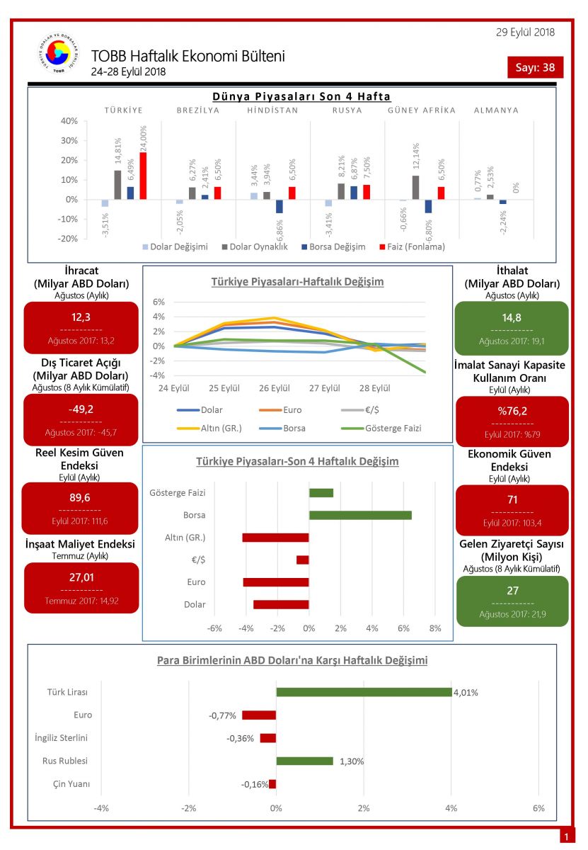 TOBB HAFTALIK EKONOMİ BÜLTENİ 24-28 EYLÜL 2018