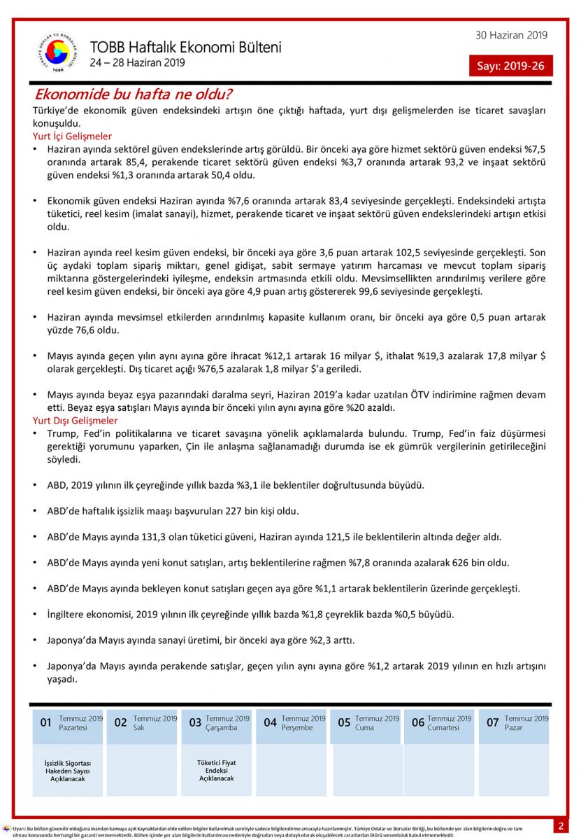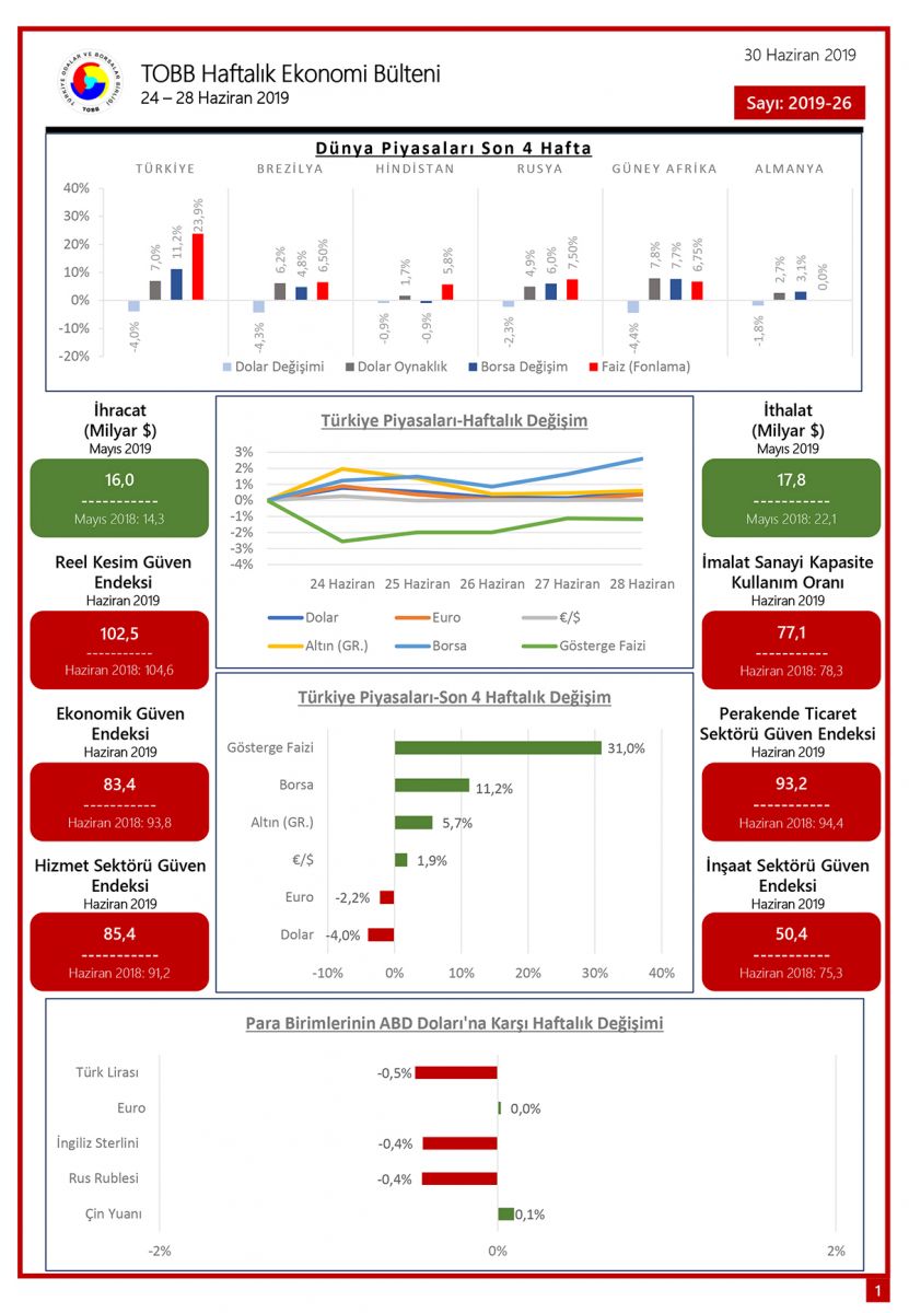 TOBB Haftalık Ekonomi Bülteni '24 – 28 Haziran 2019'