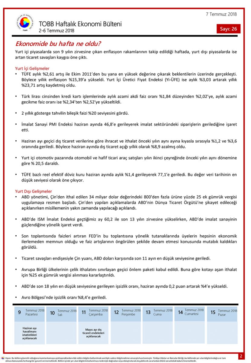 TOBB HAFTALIK EKONOMİ BÜLTENİ 27