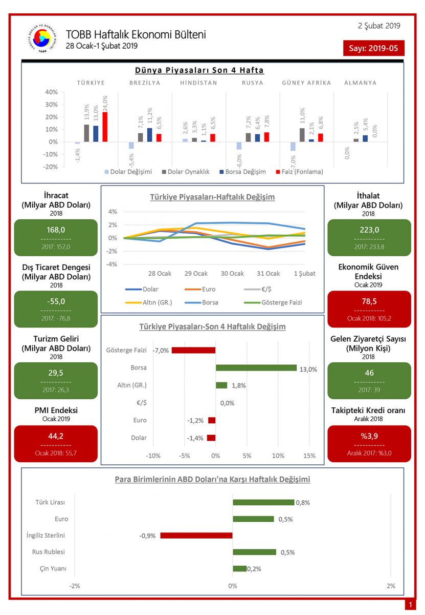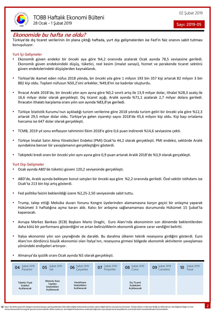 TOBB HAFTALIK EKONOMİ BÜLTENİ '28 Ocak - 1 Şubat 2019'