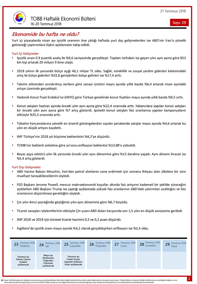 TOBB HAFTALIK EKONOMİ BÜLTENİ 29