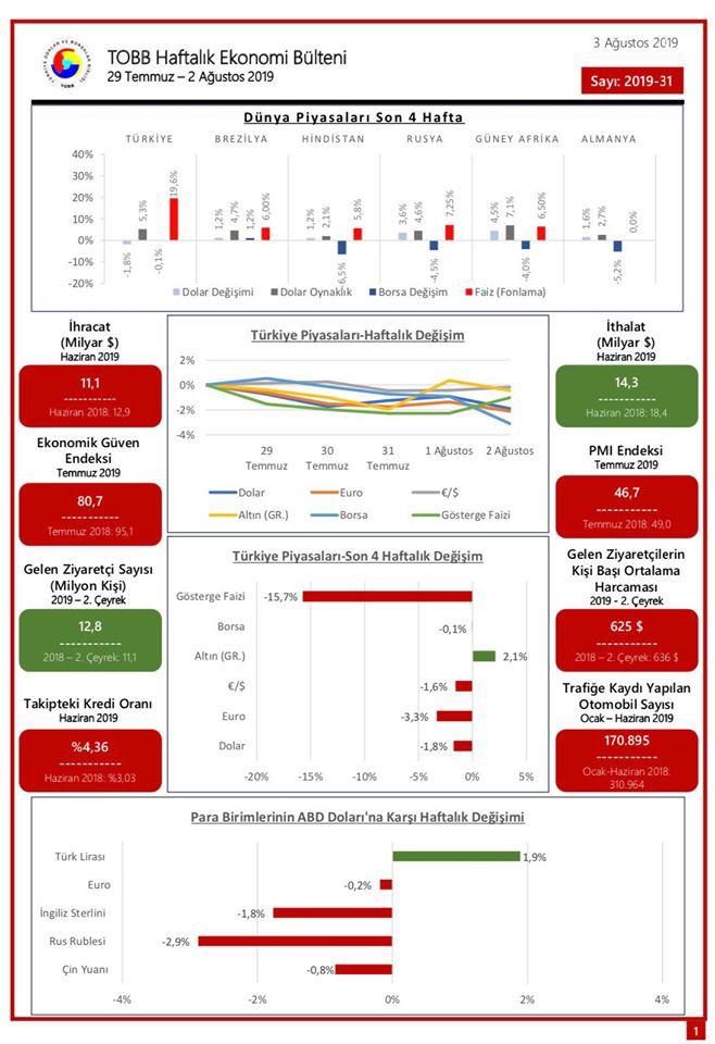 TOBB HAFTALIK EKONOMİ BÜLTENİ '29 TEMMUZ – 2 AĞUSTOS 2019'