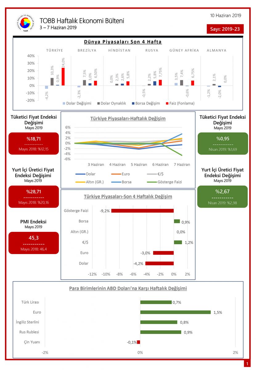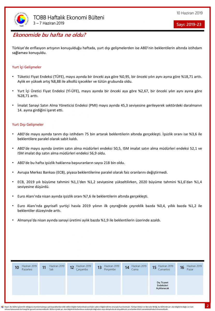 TOBB HAFTALIK EKONOMİ BÜLTENİ 3 – 7 HAZİRAN 2019