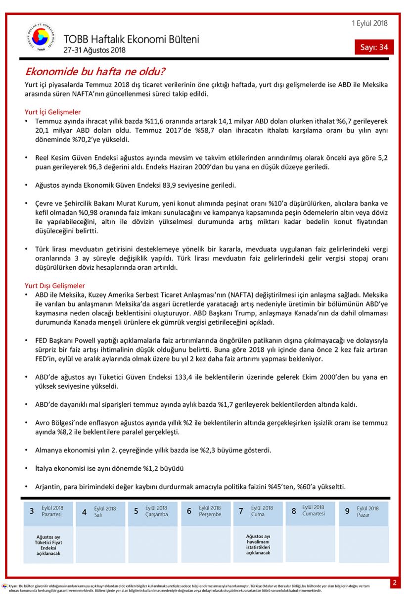 TOBB HAFTALIK EKONOMİ BÜLTENİ 34
