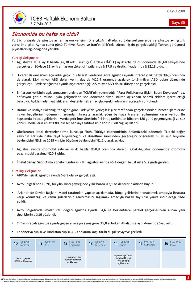 TOBB HAFTALIK EKONOMİ BÜLTENİ 35
