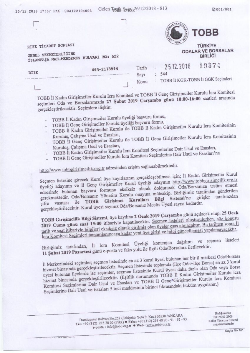 TOBB İL KGK VE TOBB İL GGK SEÇİMLERİ