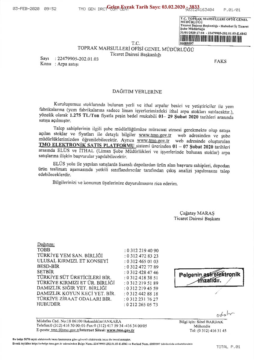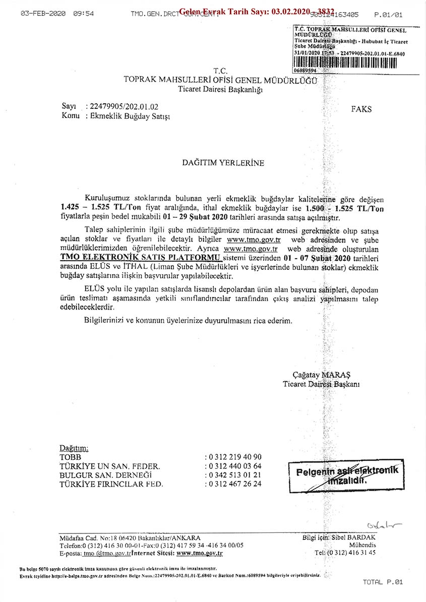 TOPRAK MAHSULLERİ OFİSİ GENEL MÜDÜRLÜĞÜ SATIŞ DUYURUSU