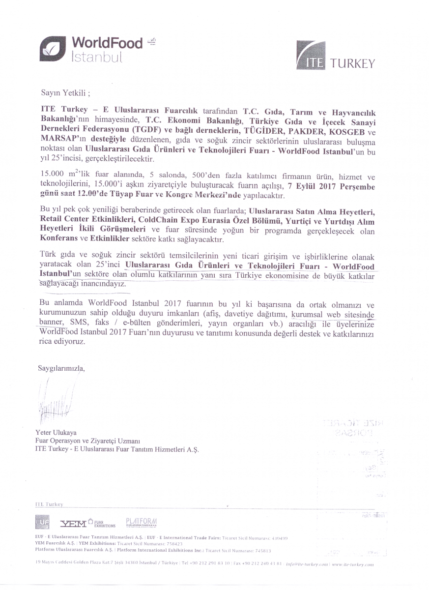 ULUSLARARASI GIDA ÜRÜNLERİ VE TEKNOLOJİLERİ FUARI
